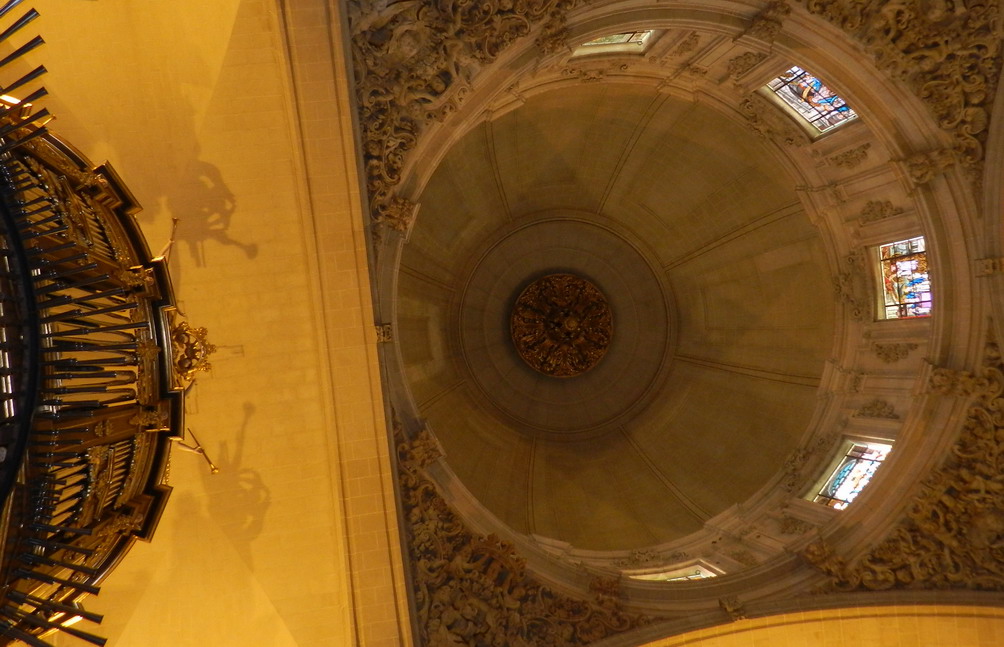 Me puse el traje de cazador de imágenes, fotógrafo con trípode en ristra y empecé a sentir la llamada del safari de las fieras imágenes con la escultura- bola del mundo de Eutiquio, la plaza de la Basílica de Santa María que llama del Congreso Eucarístico, el interior es barroco y saqué fotos al trono o paso del Corpus Cristi o Cuerpo de Cristo y a lanzar flashes convertidos en rayos cósmicos al cáliz reliquia con esfera de luminoso cristal y también al techo de donde sale y baja la Gran Palmera el 15 de agosto con la Virgen, la Anunciación que llaman el Misteri de Elx, tradicional de 6 ó 7 siglos atrás.